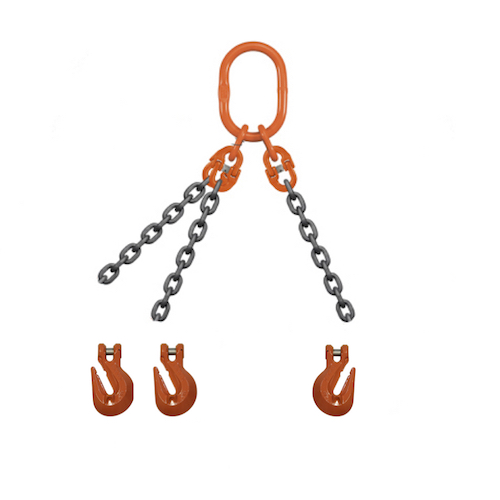9/32″ Grade 100 TOG – Triple Leg w/Oblong Ring One End, Grab Hook Other End X 18 Feet
