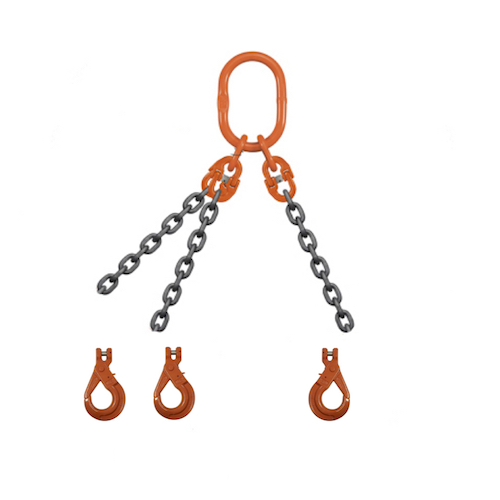 9/32″ Grade 100 TOSL – Triple Leg w/Oblong Ring One End, Self-Locking Hook Other End X 12 Feet