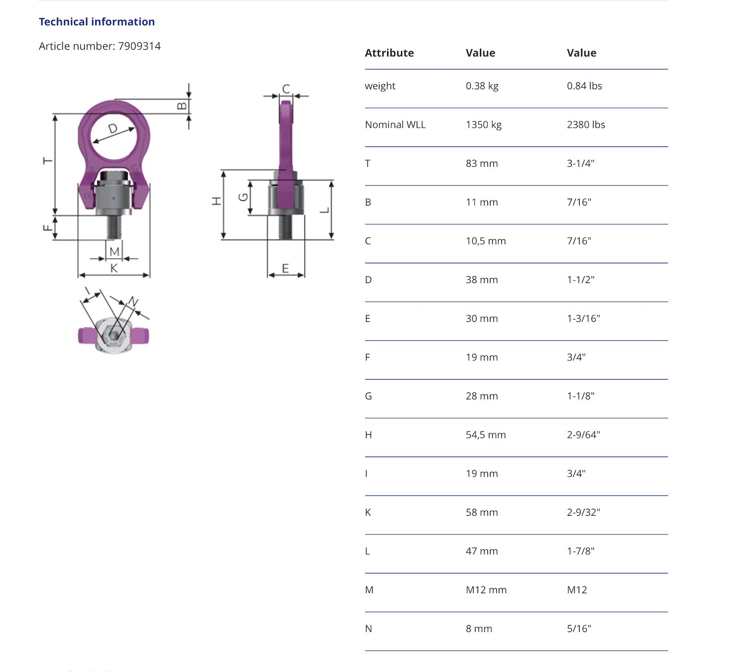 Specific features of the ACP-Turnado M12 are the Innovative exterior spring mechanism which prevents vertical stopping of the lift bail. A round lift bail so that no clinking is possible. A combination head threaded rod with internal and external hexagon for optimized handling; up to M24 as RUD ICE-BOLT.