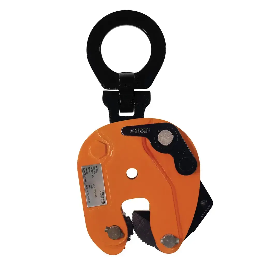 Design: It’s a robust, manual clamp with a pivoting shackle for attachment to cranes or hoists.