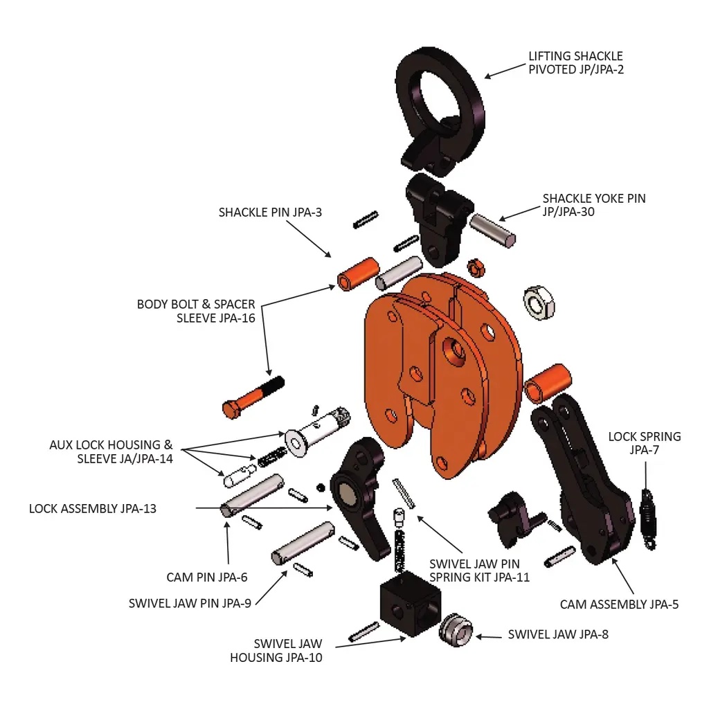 The Renfroe Model JPA-02.00-A Plate Clamp is a 2 ton capacity vertical lifting clamp. Designed for handling steel plates and other flat materials. Manufactured by J.C. Renfroe & Sons, Inc., this specific model has a capacity of 2 tons (4,000 lbs) and is engineered to lift and rotate a single plate or member from a horizontal to a vertical position—or vice versa—through a 180-degree arc. It’s commonly used in industrial settings like construction, manufacturing, and steel fabrication where precise and safe material handling is required.