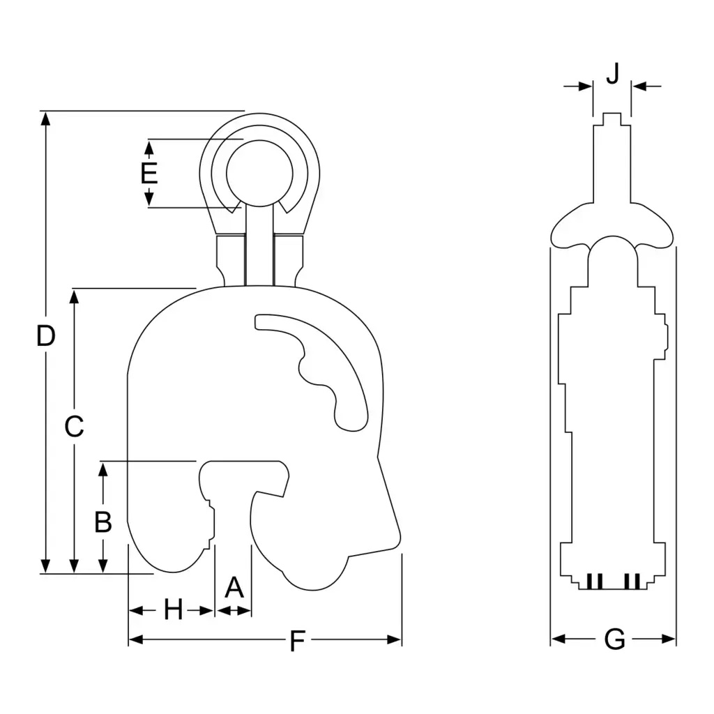 The Renfroe Model JPA-02.00-A handles plates from 0 to 1 inch thick. Constructed from high-strength steel, it adheres to ANSI B30.20 safety standards, offering durability and ease of maintenance.