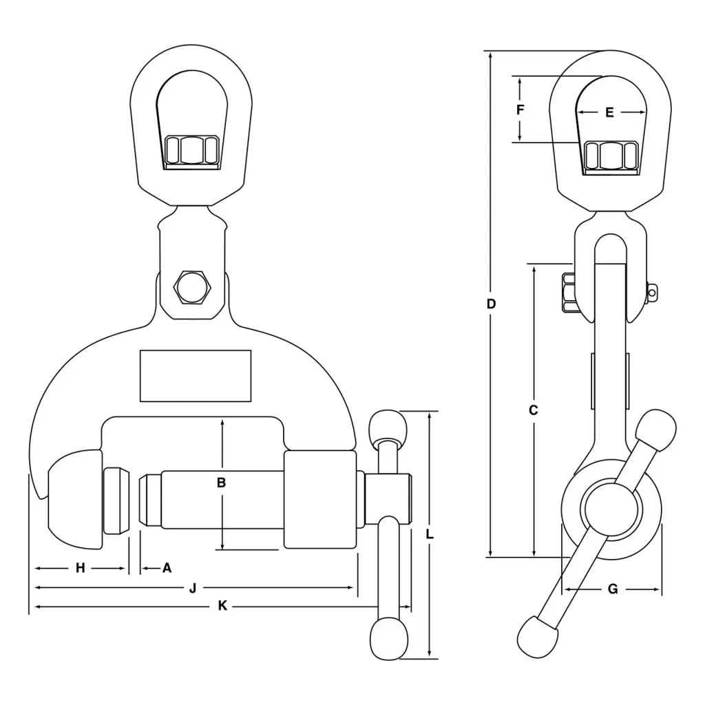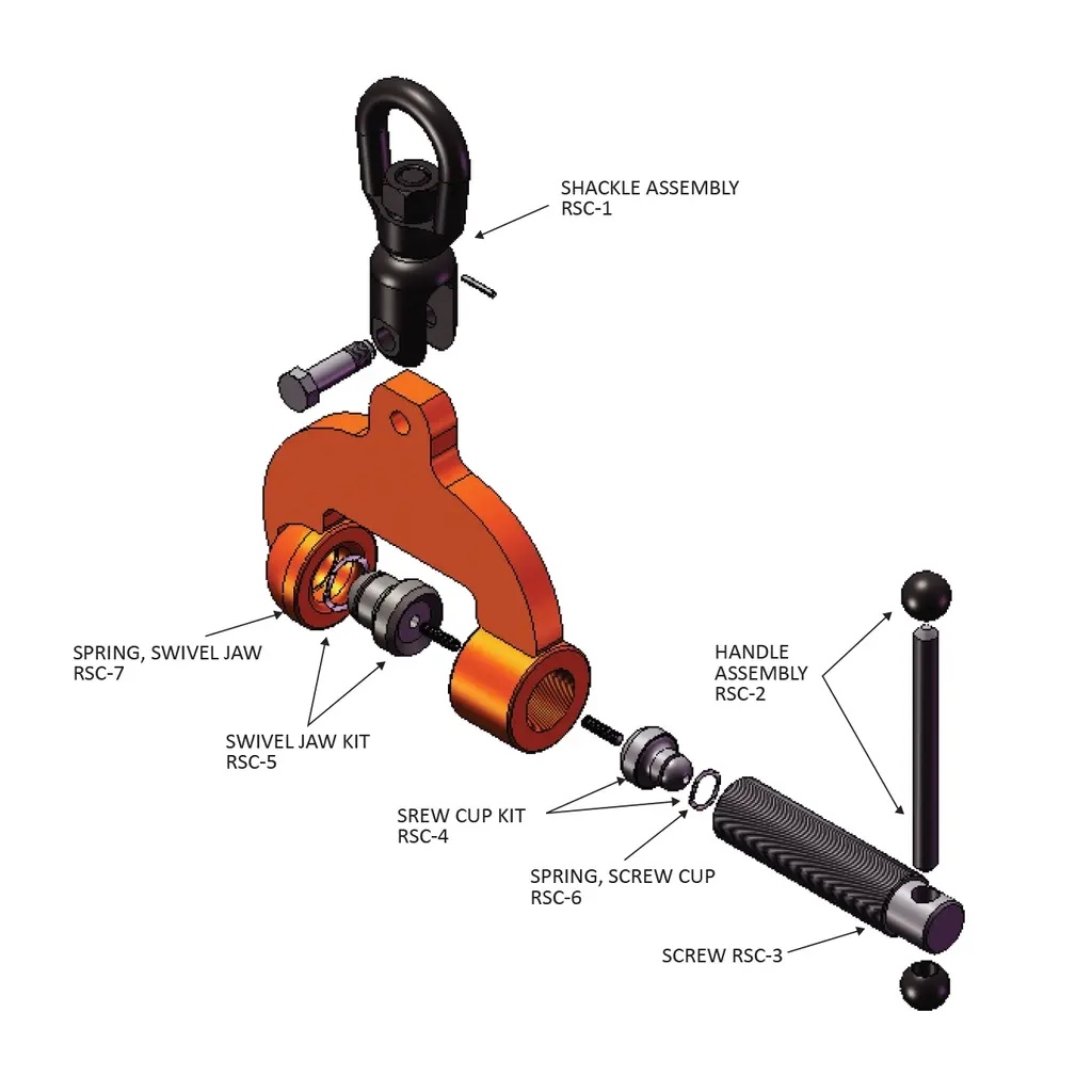 This clamp features a locking screw design, which requires manual adjustment to secure the plate. The screw mechanism ensures a firm grip by applying pressure directly to the material. It includes a swivel jaw that adapts to the plate’s surface for a reliable hold. Unlike some other Renfroe models with spring-loaded or pivoting cams, the RSC relies on the operator to set and release the clamp, offering simplicity and control for lighter, controlled lifts.